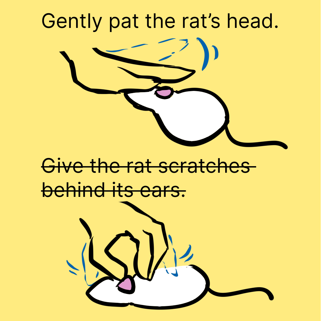 Task 3 Completion Criteria: User pets the rat by patting its head and giving it scratches behind the ear.