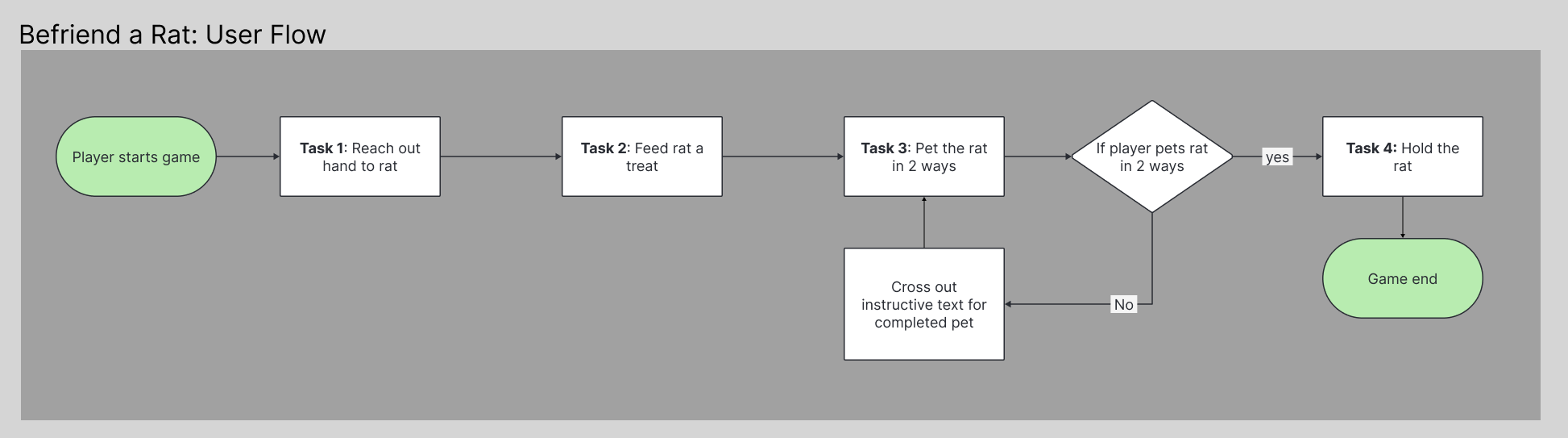 Task Parts: Task 3 is divided into two parts, as I wanted to introduce both ways to pet a rat but felt these were too similar to split into their own separate tasks. When one part is complete: